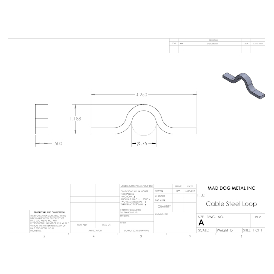 Typically used for fencing and corrals around feed lots, farms and ranches. This bracket is often used by welding it to a post and then threading cable through the eye from post to post. 9/16 or 5/8 cable is a common application. See drawing for details. This product is not painted.